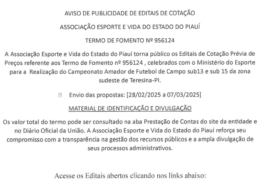Nosso trabalho abrange a realização de grandes competições, como a Copa Cajuina de Futevôlei e a Super Copa Leste Sub-17, além de campeonatos juvenis e a entrega de materiais esportivos para escolinhas locais. Também organizamos eventos significativos como as Olimpíadas de Desporto Amador do Piauí.